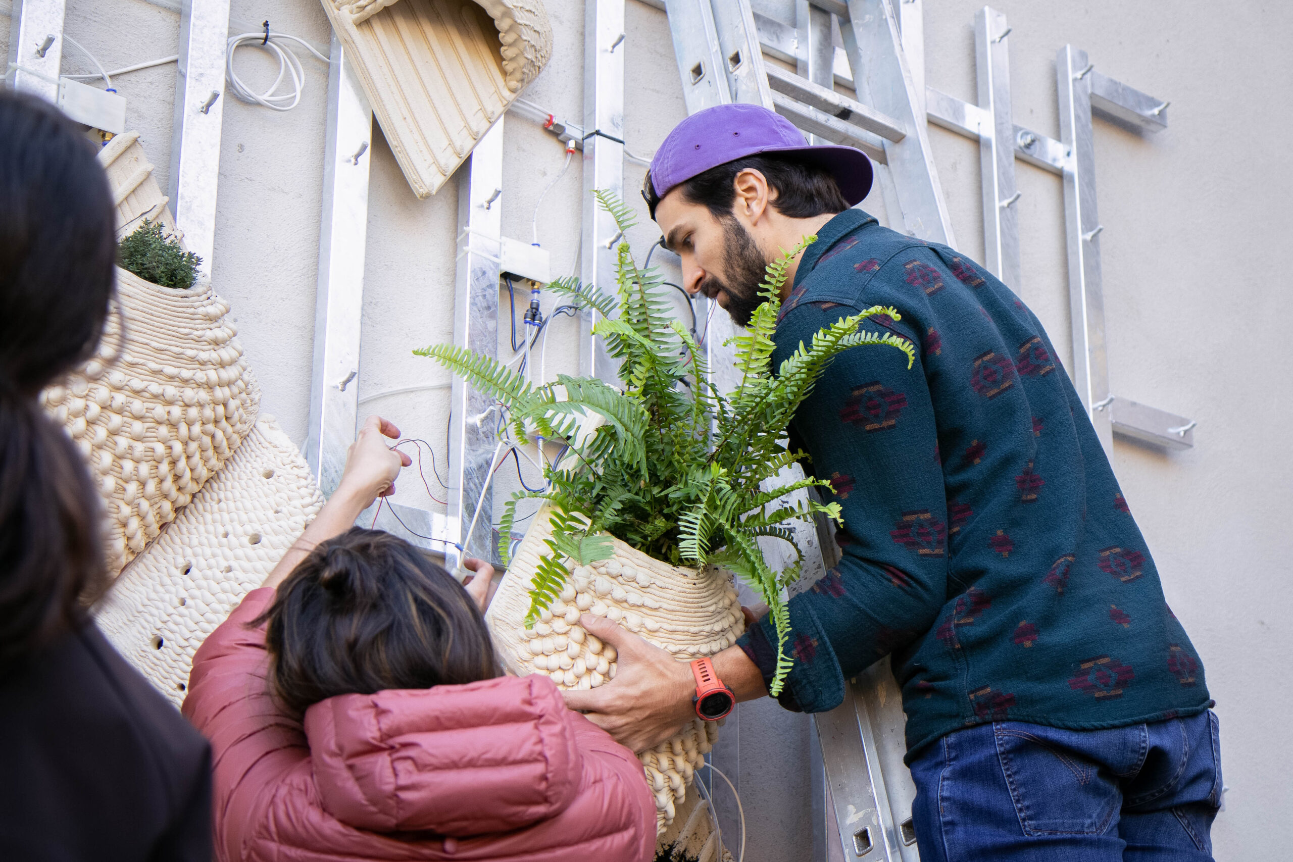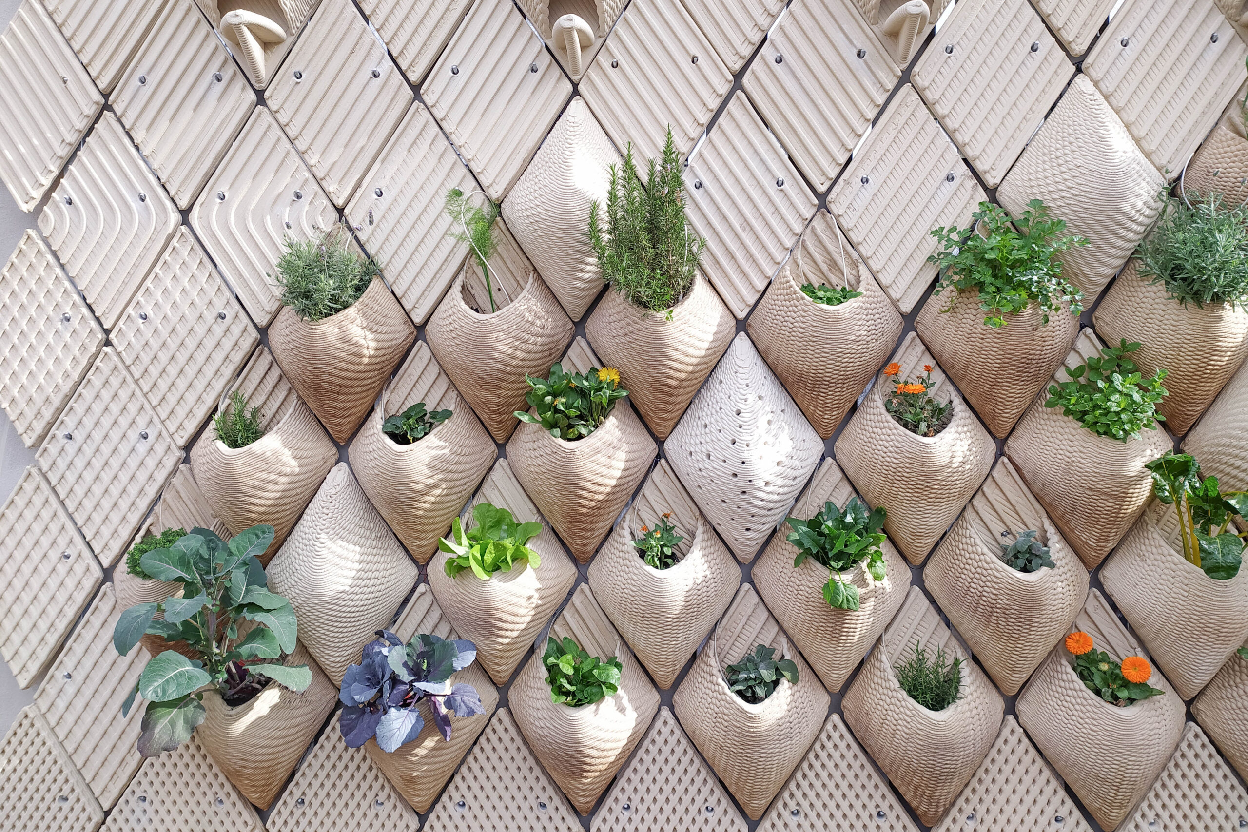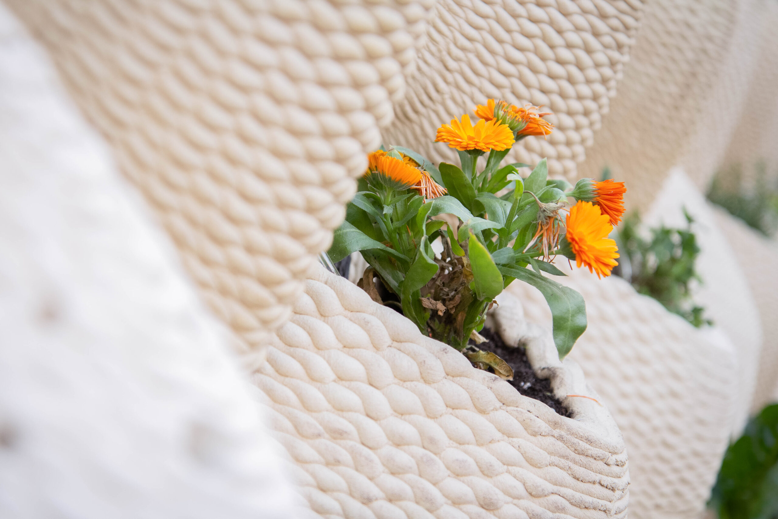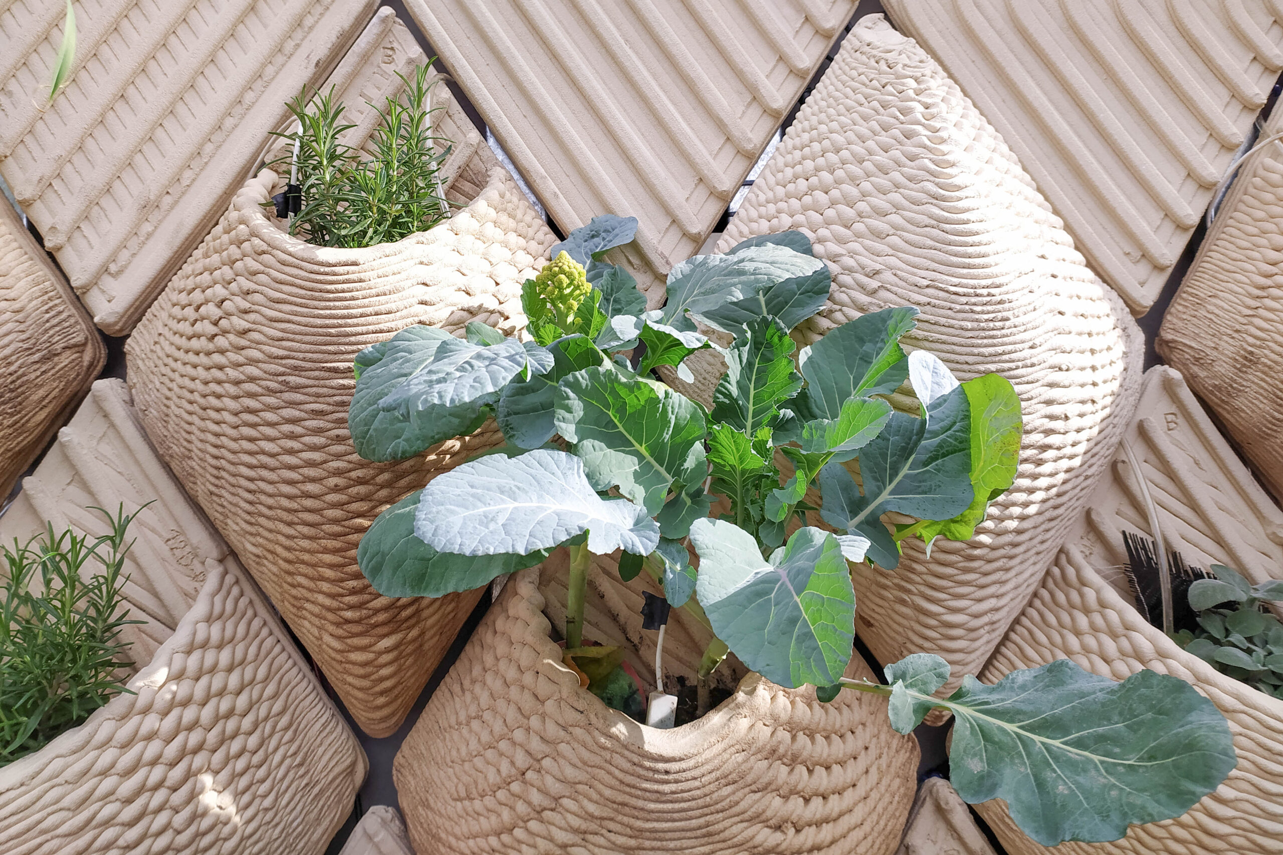 The technique used for the realization of the vertical garden is 3D printing with clay, a natural material with a low carbon footprint, which after firing at low temperature is transformed into ceramic.