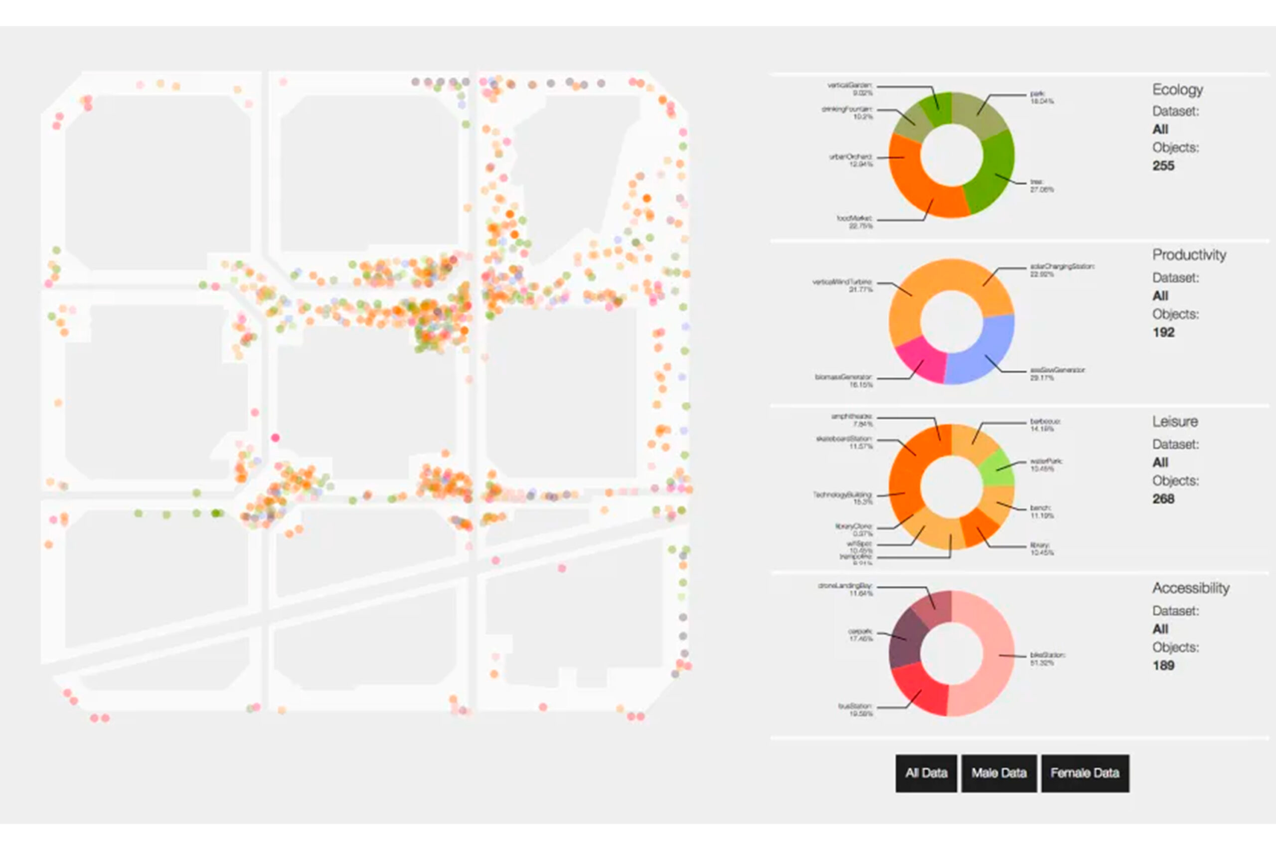 The application collects the data of each session in a server, building a database about the citizen’s desires, needs and proposal and allowing the data visualisation and analytics in a dashboard, accessible to citizens, architects and public entities.